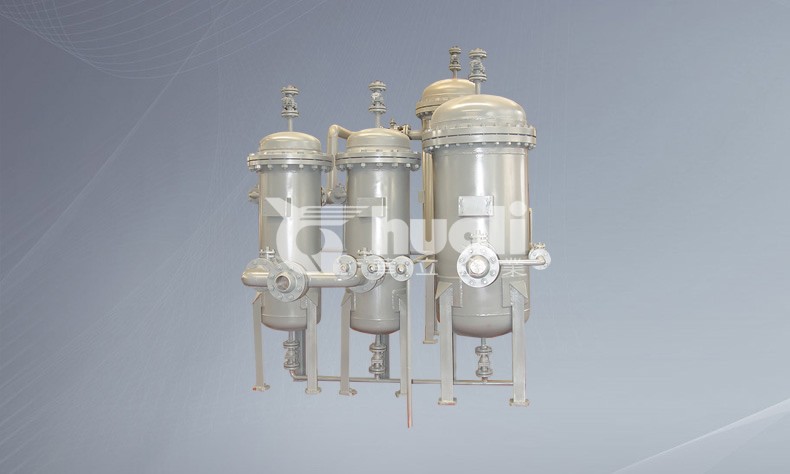 三級采用大容量的超精細濾袋式過濾,過濾精度5μm。對胺液系統(tǒng)剩余微量的懸浮狀固體進行截留。所采用的濾袋納污量是傳統(tǒng)濾袋的9倍。