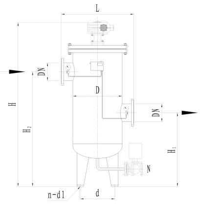 注:1、本過濾器根據用戶工藝要求,可設計成進出口位于同一高度。