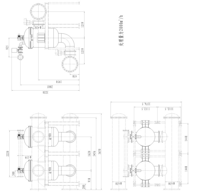 | 600 | Φ1200 | 1530 | 3250 | 1030 | 2000 | 4-Φ24 | Φ950 | DN50 | 2500 |