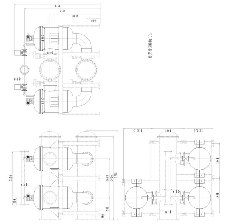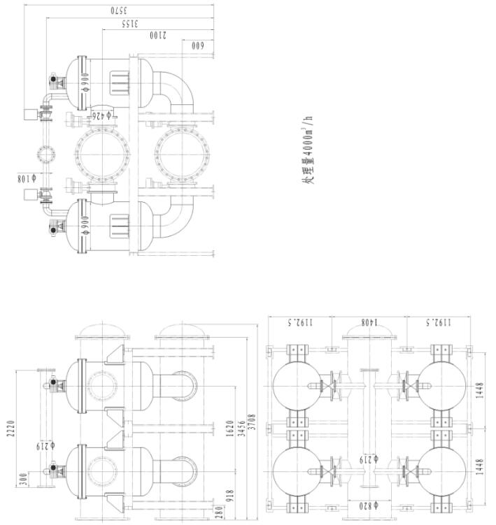 | 350、400 | Φ800 | 1120 | 2500 | 790 | 1400 | 4-Φ24 | Φ620 | DN50 | 1200 |